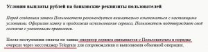 В первую очередь стоит сказать, что признаки мошенничества были обнаружены при изучении раздела «Условия и правила обмена». В одном из пунктов данного документа указано, что для завершения операции по обмену пользователю нужно связаться с представителем обменника в Телеграм.