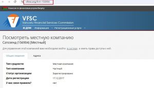 Однако при детальном изучении было обнаружено, что ссылки данных страниц совершенно не совпадают с официальными сайтами регуляторов. На примере рассмотрим данные о лицензировании VFSC. Видно, невооруженным взглядом, что ссылка на эти сведения фейковая. Использование поддельных документов – явный признак обмана.